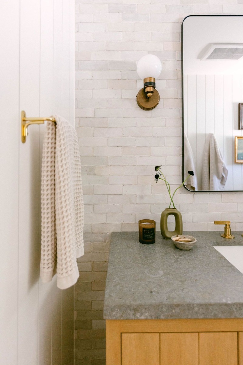 In a bathroom, having a mix of both warm and cool lighting is key to creating a space that’s both functional and relaxing.