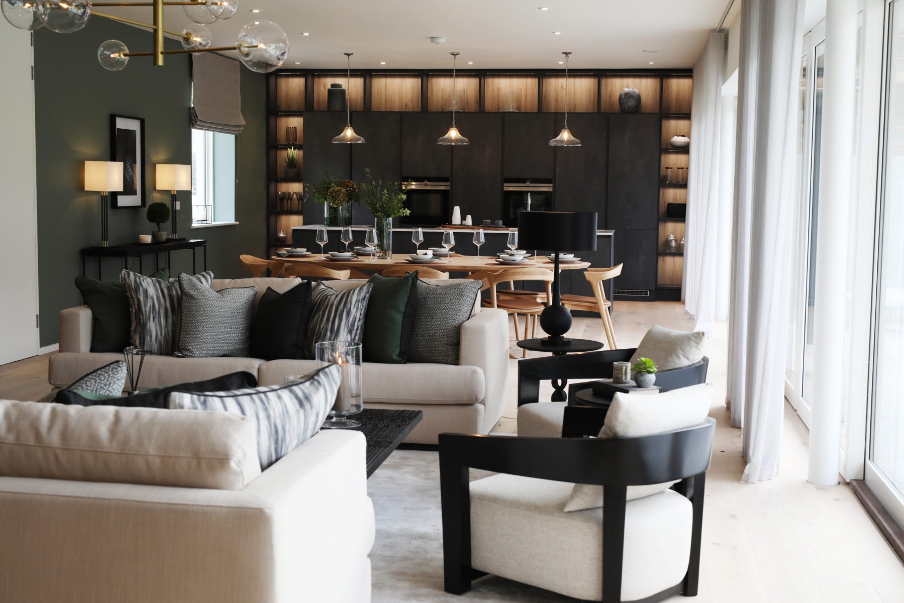 MLP454 Clifton Pendant - 'Clifton' clear glass pendant lights in a private residence by Pollard Design. Photo credit: Ailbhe O' Donnell.